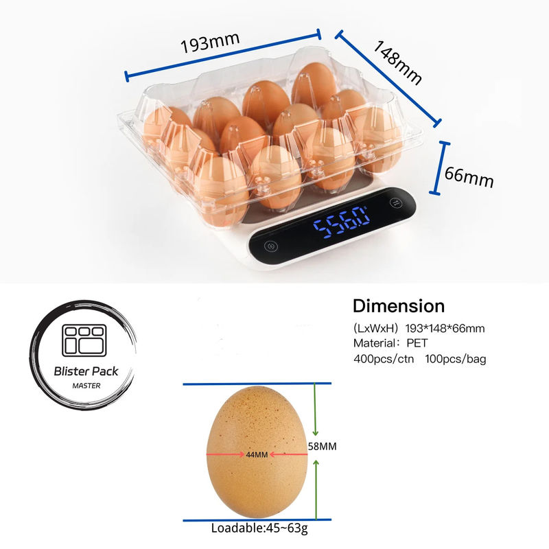 Blister Pack Master's 3x4 Clear Plastic Egg Container ist ideal für Produzenten und Einzelhändler, die eine zuverlässige Lösung für die Aufbewahrung und Anzeige von Eiern benötigen.Seine klare Gestaltung schützt nicht nur die Eier, sondern verbessert auch ihre Darstellung, so dass es für Luxusmärkte und Geschäfte geeignet ist, in denen die Sichtbarkeit des Produkts entscheidend ist.